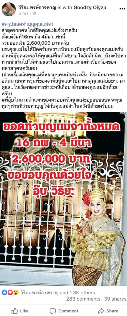 อุ๊บ วิริยะ โพสต์เฟสบุ๊คว่า