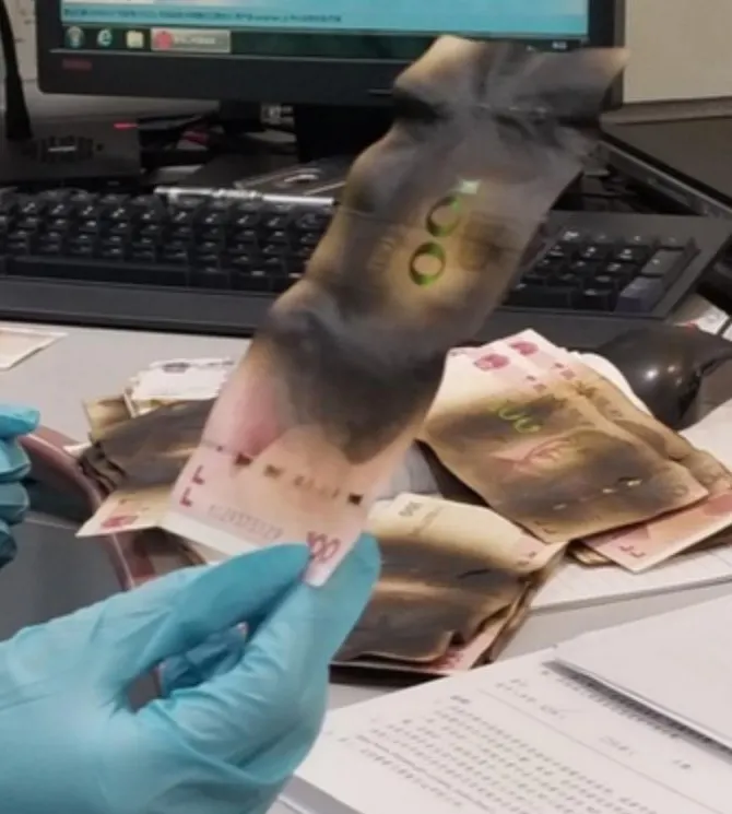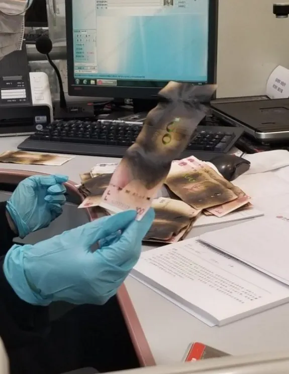 หญิงสาวเริ่มได้กลิ่นไหม้ลอยออกมาจากห้องครัว ก่อนจะพบภายหลังว่าธนบัตรที่เธอเอาไปฆ่าเชื้อเกิดไฟลุกไหม้จนดำเกรียมหมดเรียบร้อย รวมเป็นเงินที่เธอสูญไปกว่า 3,000 หยวน (ราว 14,000 บาท) ด้วยความตกใจสุดขีดเธอพยายามเก็บรวบรวมเงินทั้งหมด หอบไปที่ธนาคารเพื่อขอแลกเป็นธนบัตรใหม่ทันที
