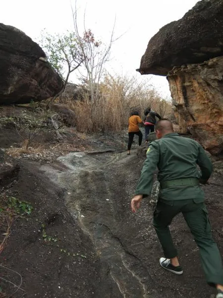 เมื่อเดินไปถึงจุดหมาย น้องๆทีมงานช่วยกันวิดน้ำฝนที่ท่วมขังและกวาดขี้โคลนออกจากรอยพระพุทธบาทจนสะอาดตา สภาพเดิมเมื่อค้นพบใหม่ จะมีทรายปิดทับรอยพระพุทธบาทไว้ เป็นหินสีธรรมชาติ และต่อมาชาวบ้านได้นำสีทองมาทาทับไว้