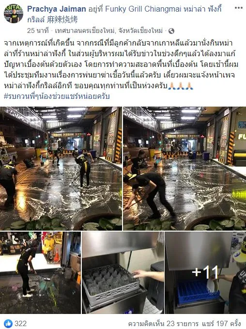 จากเหตุการณ์ที่เกิดขึ้น จากกรณีที่มีลูกค้ากลับจากเกาหลีแล้วมานั่งกินหม่าล่าที่ร้านหม่าล่าฟังกี้ ในส่วนผู้บริหารผมได้รับข่าวในช่วงดึกๆแล้วได้ลงมาแก้ปัญหาเบื้องต้นด้วยตัวเอง โดยการทำความสะอาดพื้นที่เบื้องต้น โดยเช้านี้ผมได้ประชุมทีมงานเรื่องการพ่นยาฆ่าเชื้อวันนี้แล้วครับ เดี๋ยวผมจะแจ้งหน้าเพจหม่าล่าฟังกี้กริลล์อิกที ขอบคุณทุกท่านที่เป็นห่วงครับ🙏🏻🙏🏻🙏🏻