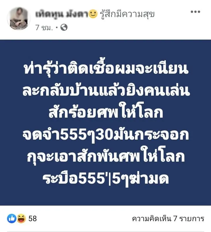 หนุ่มช่างสัก โพส "ถ้าติดเชื้อผมจะเนียนเอาปืนยิงเล่นสัก ร้อยศพให้โลกจดจำ"