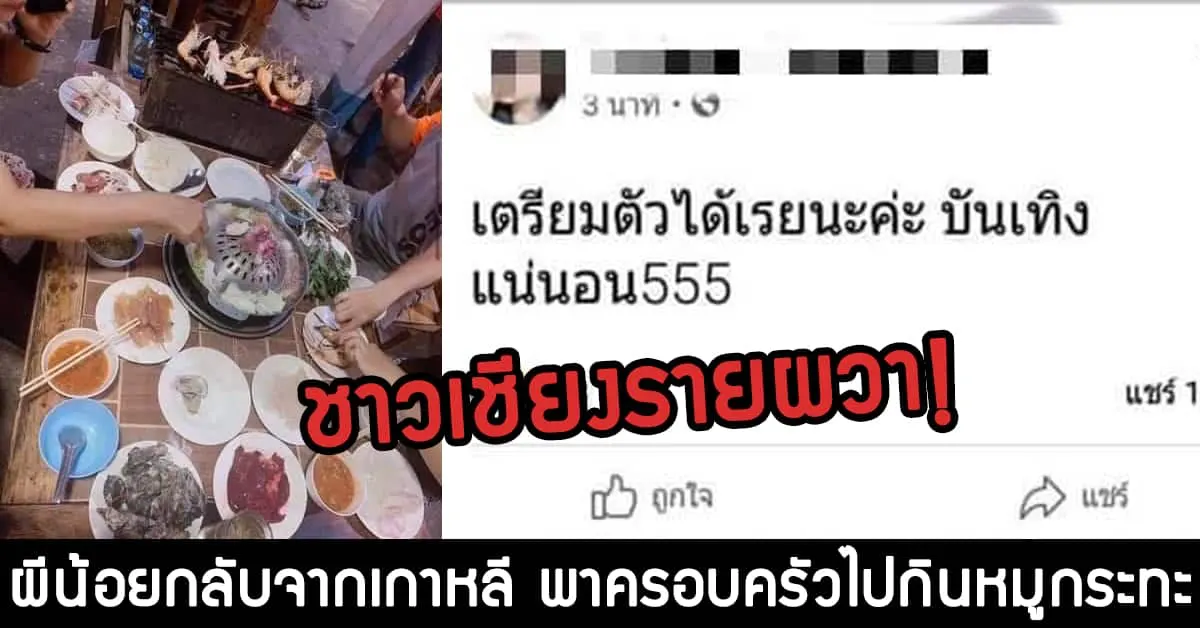 โซเชียลเดือด หลังพบ "ผีน้อยเกาหลี" ถึงเมืองไทยไม่กักตัว 14 วันตามข้อกำหนด เพ่นพ่านไปกินหมูกระทะ ทำร้านเดือดร้อนต้องปิดทำความสะอาดยกใหญ่ หวั่นโควิด-19