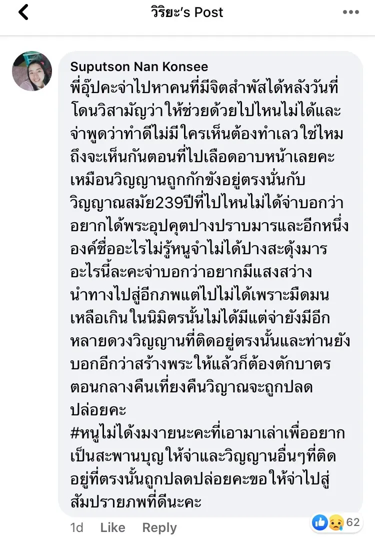 นอกจากนี้ยังมีผู้ใช้เฟสบุ๊คท่านหนึ่งอ้างว่ามีจิตสัมผัสได้เล่าเรื่องเกี่ยวกับจ่าคลั่งในแนวทางเดียวกับคนอื่นๆเช่นกัน