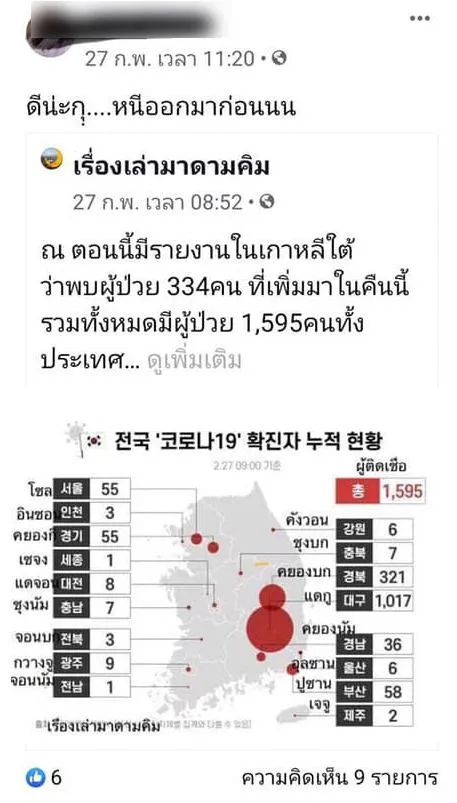 3.จนท จึงถามหาหลักฐานที่ยืนยันว่าเจ้าตัวถูกกักตัวไว้ 14 วัน ปรากฎว่าเจ้าตัวไม่สามารถหาหลักฐานมายืนยันได้ ประกอบกับ นายแพทย์สาธารณสุขจังหวัด ได้สอบถามไปยังกรมควบคุมโรค ได้รับการยืนยันว่า ไม่มีข้อตกลงระหว่างไทยกับเกาหลีใต้เรื่องให้กักตัวคนไทย เพื่อดูอาการของโรคก่อนให้เดินทางออกนอกประเทศ