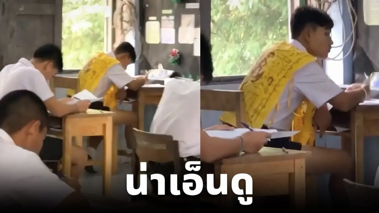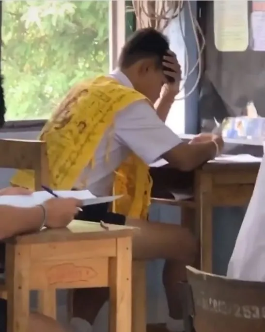 เด็กนักเรียน ม.ปลาย เข้าสอบอย่างเคร่งเครียด มีอยู่คนหนึ่งใส่ชุดแต่งกายไม่เหมือนใคร