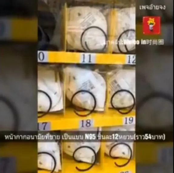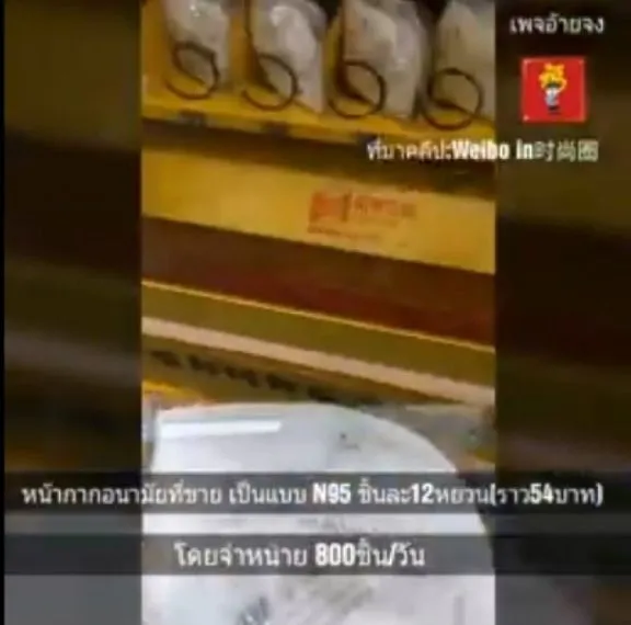 หน้ากากอนามัยที่ขายในตู้ เป็นแบบ N95 ราคา 12 หยวน หรือ 54 บาท