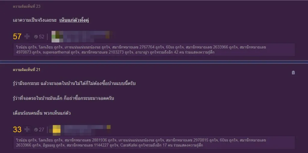 หลังจากเรื่องราวถูกแชร์ออกไปนั้น ชาวเน็ตหลายคนต่างเข้ามาคอมเมนต์เป็นเสียงเดียวกันว่า เห็นแก่ตัวทั้งคู่ พร้อมทั้งวิพากษ์วิจารณ์อีกว่า ถ้าหากตัวเองเป็นรถใหญ่ ก็ไม่ควรที่จะมีบ้านแบบนี้