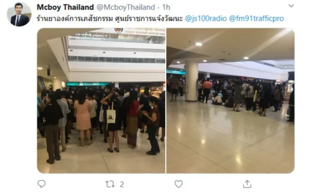 เมื่อช่วงเช้านี้ วันที่ 6 มีนาคม 2563 มีสมาชิกทวิตเตอร์รายหนึ่งชื่อว่า Mcboy Thailand McboyThailand ได้โพสต์ภาพพร้อมทวีตข้อความว่า ร้านองค์การเภสัชกรรม ศูนย์ราชการแจ้งวัฒนะ ซึ่งเป็นภาพประชาชนจำนวนมากมาเข้าแถวรอซื้อหน้ากากอนามัย เจลล้างมือ และอุปกรณ์ป้องกันต่างๆ หลังเกิดภาวะวิกฤตไม่มีสินค้าขาย เนื่องจากสินค้าดังกล่าวขาดตลาดอย่างมาก ประชาชนหาซื้อไม่ได้ จึงต้องมาดักรอหน้าร้านจำหน่าย เพื่อรอซื้ออุปกรณ์ป้องทุกชนิด เพราะตอนนี้เริ่มมีพ่อค้า แม่ค้าหัวหมอนำหน้ากากอนามัยมาขายในราคาที่แพงเกินกำหนดและมีขนาดบางไม่ได้คุณภาพ และยังมีคนเริ่มนำหน้ากากอนามัยมือสองมาจำหน่ายซึ่งเป็นอันตรายต่อผู้ใช้เป็นอย่างมาก