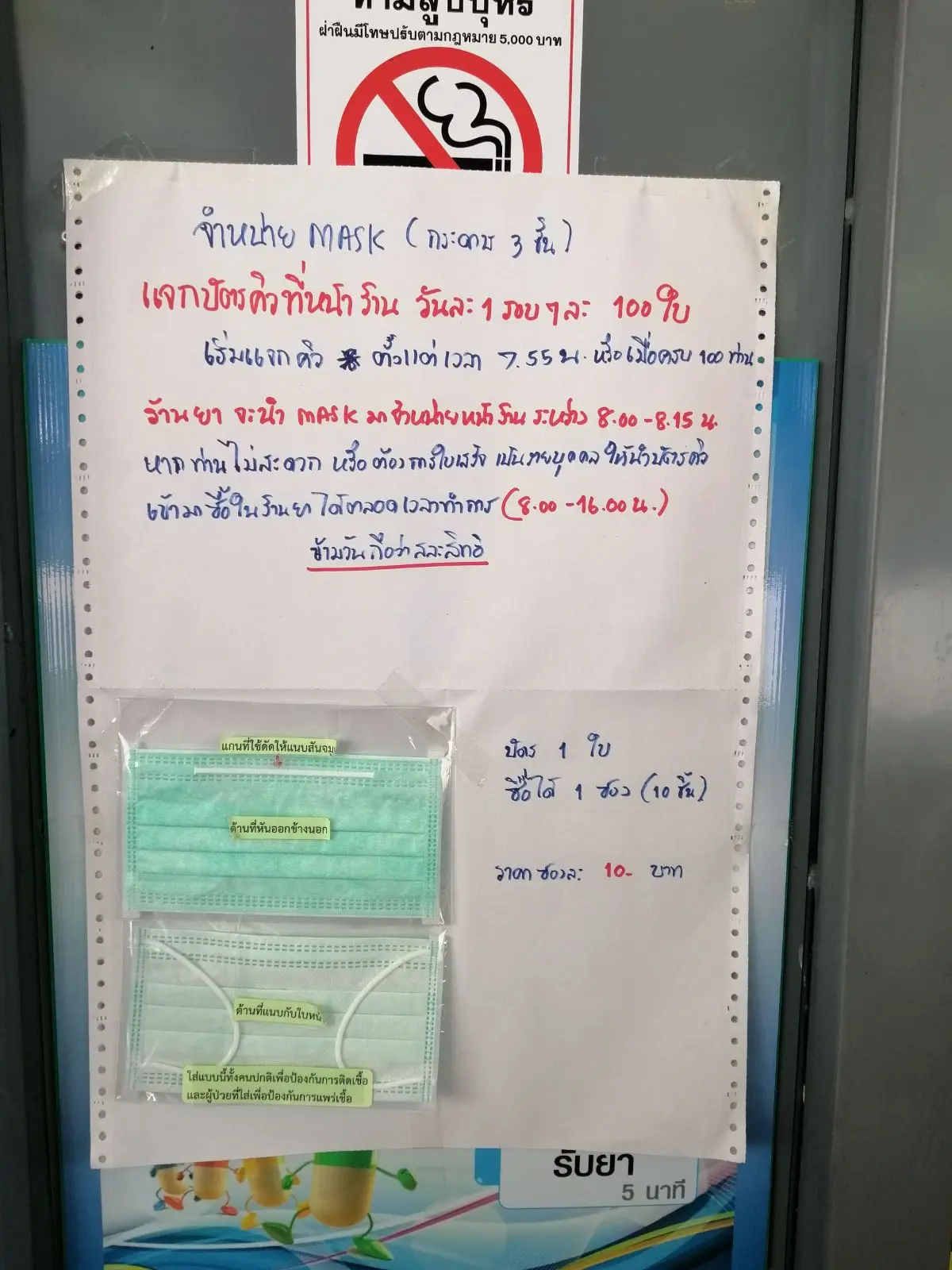 ในการจำหน่ายผลิตภัณฑ์หน้ากากอนามัย โดยการแจกบัตรคิวที่หน้าร้าน รอบละ 100 ใบ: 1 คน: 3 ห่อ (30 ชิ้น): ห่อละ 10 บาท แบ่งออกเป็น 2 รอบ รอบละ 100 คน คือ ช่วงเช้า เวลา 08.00 - 8.15 น. (100 คน) และ ช่วงบ่าย(100 คน)