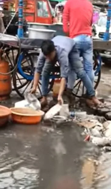 โดยเป็นคลิปของพ่อค้ามักง่ายวางจานหลุมลงบนพื้นที่มีน้ำขังและขยะลอยเกลื่อน ก่อนใช้น้ำจากกะละมังที่ไม่รู้ว่าสะอาดแค่ไหนราดเพื่อล้างโดยไม่ขัดหรือใช้น้ำยาใด ๆ และนำไปใช้งานต่อ