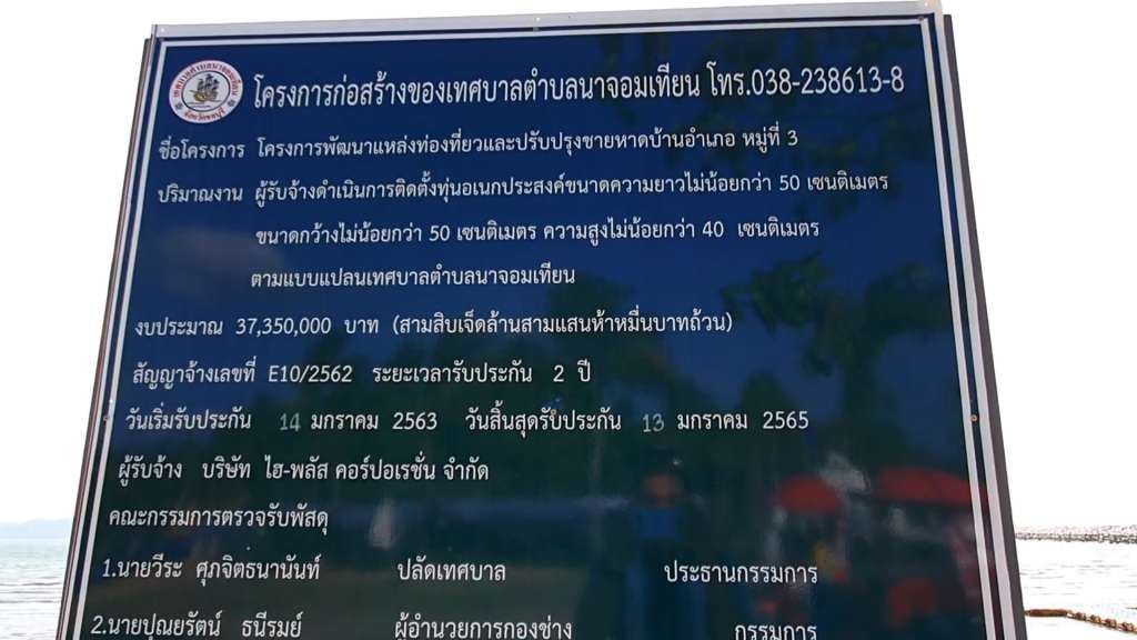 โดย เทศบาลตำบลนาจอมเทียน อ.สัตหีบ จ.ชลบุรี ได้ทุ่มงบกว่า 37 ล้านบาท ในโครงการพัฒนาแหล่งท่องเที่ยว และปรับปรุงชายหาดบ้านอำเภอ พื้นที่หมู่ที่ 3 ในการติดตั้งทุ่นอเนกประสงค์ลอยน้ำยื่นลงไปในทะเล เป็นจุดชมวิวพักผ่อน ถ่ายรูปยามพระอาทิตย์ตกดิน เพื่อกระตุ้นขยายเศรษฐกิจการท่องเที่ยวให้เจริญเติบโต มีรายได้หมุนเวียนสู่ชาวบ้านในพื้นที่