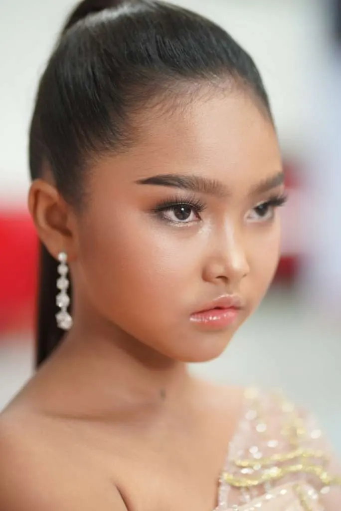 ภาพล่าสุดน้องแจ๋วแหววสาวน้อยขายพวงมาลัย เผยโฉมแต่งหน้าชุดราตรี