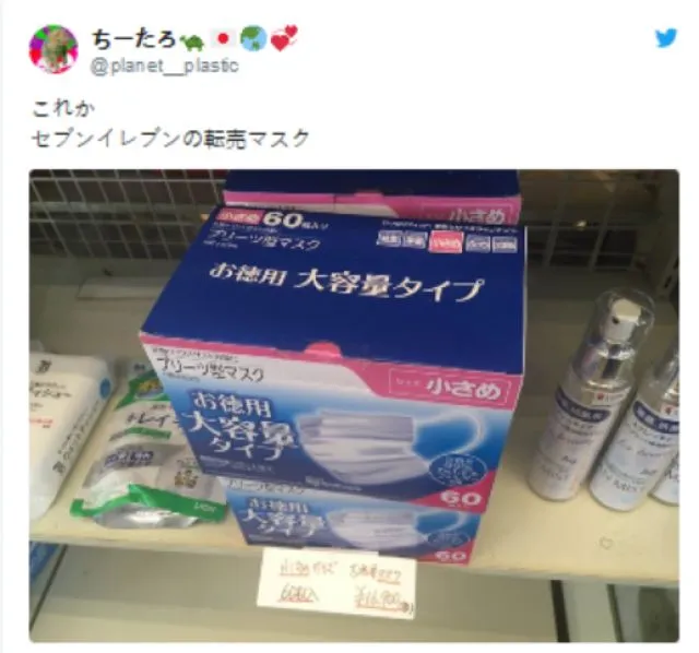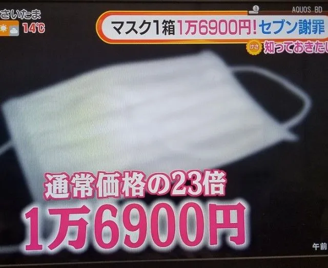 เหมือนชาวโซเชียลรายหนึ่งที่ได้โพสต์รูปกล่องหน้ากากอนามัยในร้านสะดวกซื้อเซเว่นของญี่ปุ่น หากสังเกตกันดีๆ แล้วป้ายที่เขียนชื่อสินค้าและราคานั้นถือว่าแพงเอาเรื่อง โดยที่ผ่านมาในช่วงปกติ ราคาขายหน้ากากอนามัยหนึ่งกล่องจะอยู่ที่ 600 เยน หรือ 180 บาท แต่กรณีนี้กลับพุ่งไปถึง 16900 เยน หรือ 5000 บาท ได้กำไรจากการขายสินค้าชนิดเดียวกันเกือบ 30 เท่า