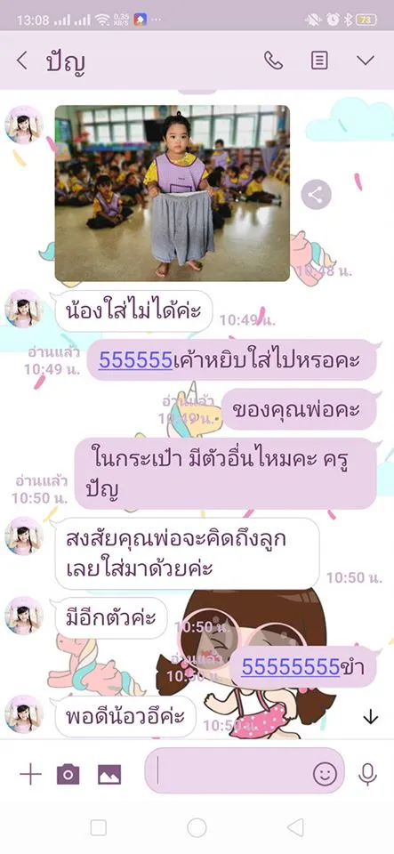 ต้องบอกว่าเป็นเรื่องราวที่หยุดขำไม่ได้จริงๆ สำหรับเรื่องราวของคุณครูชั้นอนุบาล ได้ส่งไลน์มาถามคุณแม่ หลังจากเห็นกางเกงที่พกให้ลูกมาเปลี่ยนที่โรงเรียน แต่กางเกงที่ให้มาเปลี่ยนกลับเป็นกางเกงของพ่อ กางออกมาทำเอาครูตกใจอย่างหนักเห็นแล้วก็น่าเอ็นดูจริงๆ โดยคุณแม่ได้ออกมาโพสต์เล่าว่า