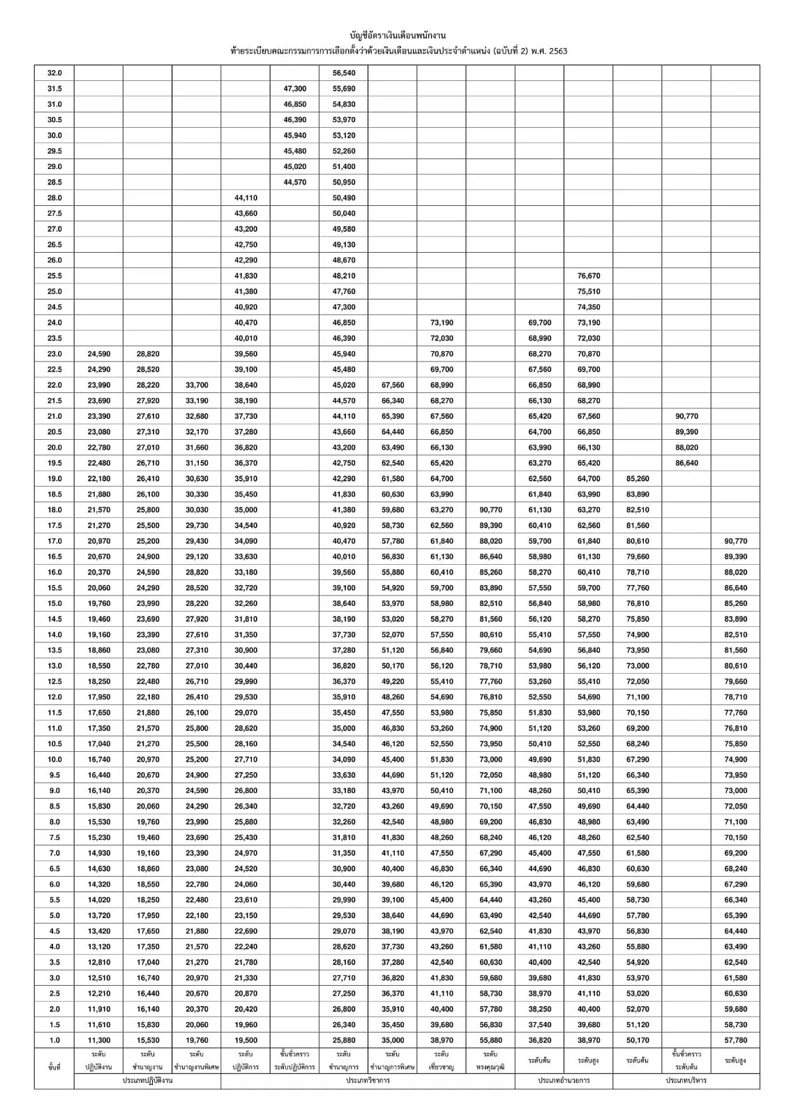 "ข้อ 4 ให้พนักงานได้รับเงินเดือนตามระดับของประเภทตำแหน่งตามที่กำหนดไว้ในบัญชี อัตราเงินเดือนพนักงานท้ายระเบียบนี้"