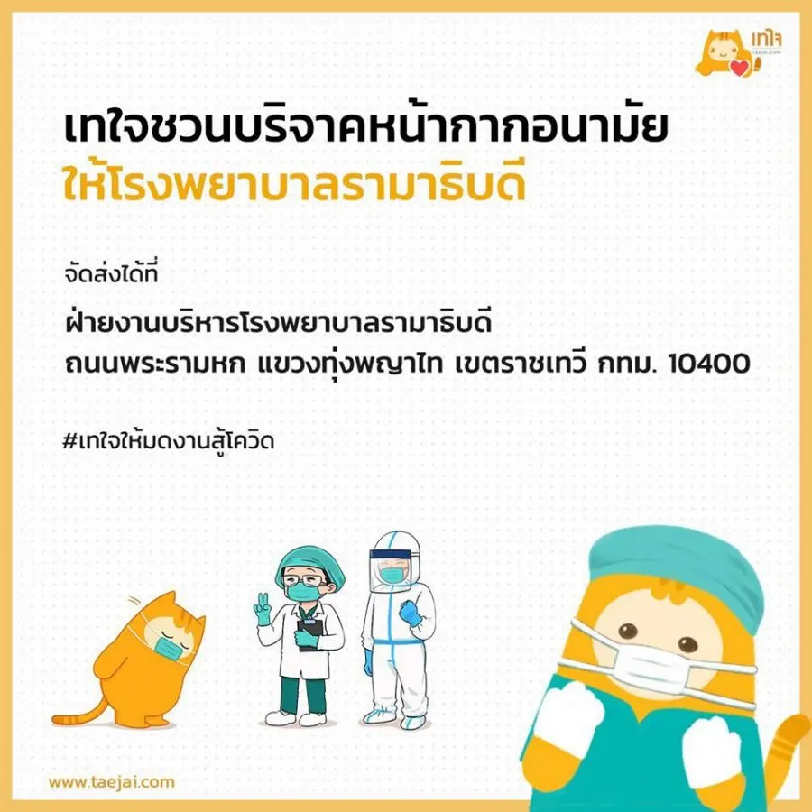 ชวนบริจาคหน้ากากอนามัยให้โรงพยาบาลรามาธิบดี หน้ากากอนามัยของท่านทุกชิ้นจะถึงมือแพทย์ พยาบาล และบุคลากรทางการแพทย์อย่างแน่นอนค่ะ