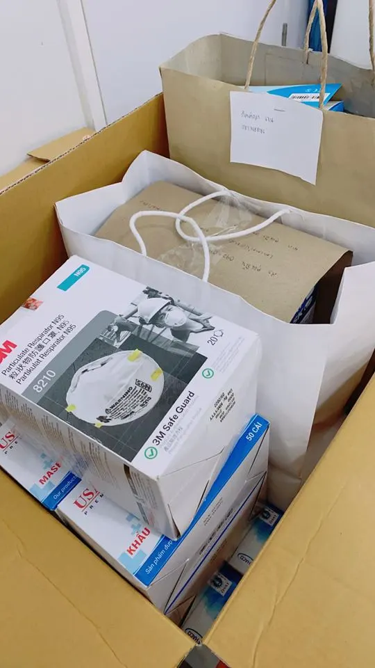 " วันนี้มีผู้บริจาคและมีคำถามเหมือนจะกังวลถามว่าหน้ากากอนามัยที่บริจาคมาจะถูกส่งถึงแพทย์ พยาบาลหรือไม่ "