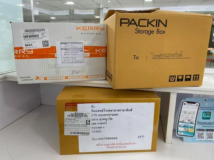 พวกเราบุคลากรทางการแพทย์ทุกคนของโรงพยาบาลรามาธิบดี ขอขอบคุณทุกน้ำใจของท่าน ที่แบ่งปันส่งหน้ากากอนามัยมาให้ มั่นใจได้เลยค่ะ ว่าทุกชิ้นนั้นสำคัญและจะถึงมือแพทย์ พยาบาล และบุคลากรทางการแพทย์ ของเราอย่างแน่นอน