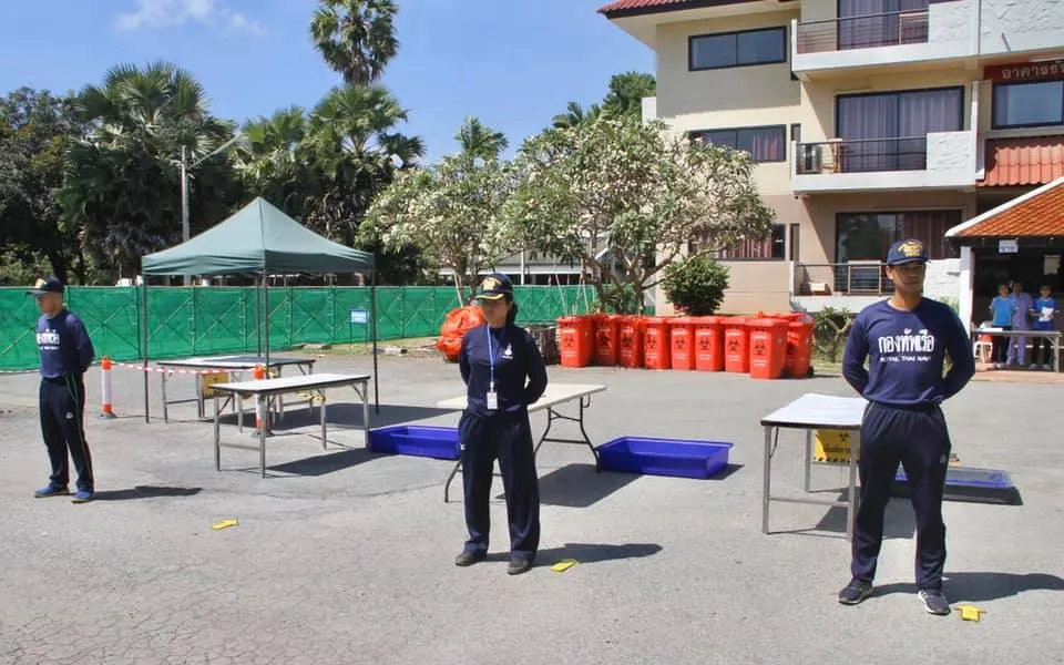 โดย ทร. ได้มีการจัดเตรียมความพร้อมของสถานที่ ทั้ง 6 อาคาร เพื่อเป็นพื้นที่ควบคุม ซึ่งในขณะนี้ได้จัดเตรียมความพร้อม สถานที่ เจ้าหน้าที่ ในการอำนวยความสะดวกต่างๆ ให้สามารถรองรับการเฝ้าสังเกตอาการ จนกว่าจะครบระยะเวลาเฝ้าระวัง ประมาณ 14 วัน