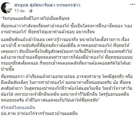 สรยุทธ เตรียมฝึกอาชีพเรียนทำปาท่องโก๋ หากทำอร่อยออกมาอาจจะทำขาย