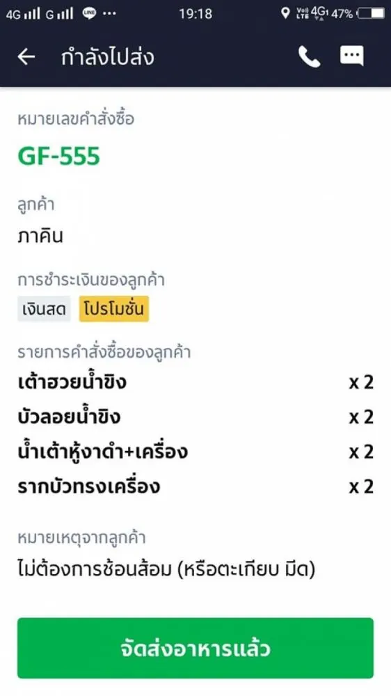 แชทยืนยันออเดอร์