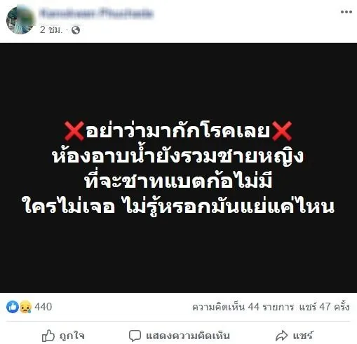 สาวโพสเศร้า! สถานที่กักตัว ไม่มีการดูแล ไร้พัดลม อาบน้ำรวม ช-ญ แต่ต่างชาติไม่โดนกัก