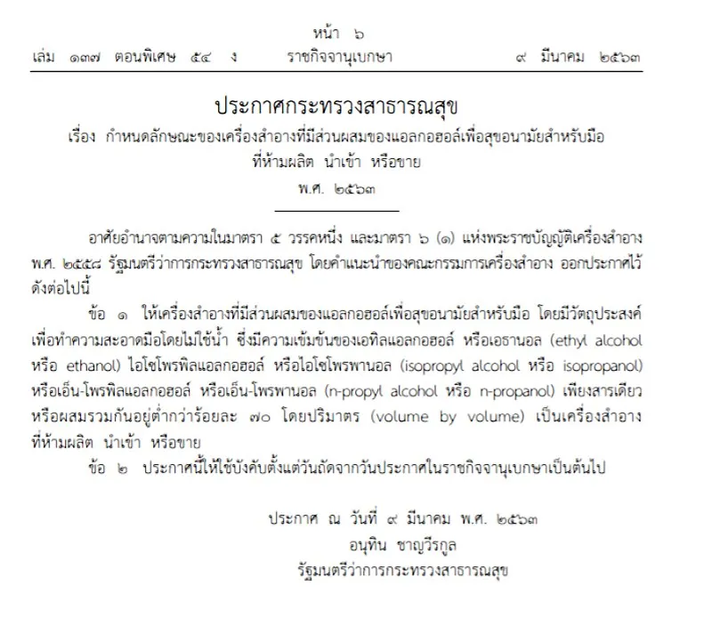 10.3.63 “ราชกิจจาประกาศเจลล้างมือเป็นเครื่องสำอางห้ามผลิตนำเข้าหรือขาย” เป็นหนึ่งในพาดหัวข่าวเมื่อค่ำวานนี้ เช่นเดียวกับสื่อในเครือก็พาดหัวเหมือนกัน คือ “ราชกิจจาฯ ประกาศให้ ‘เจลล้างมือ’ เป็นเครื่องสำอางห้ามผลิตฯ” และสื่อโทรทัศน์อีกช่องหนึ่งก็พาดหัวทำนองเดียวกัน แต่เมื่ออ่านเข้าไป เป็นการนำประกาศกระทรวงสาธารณสุขที่กำหนดหลักษณะของเครื่องสำอางซึ่งมีส่วนผสมของแอลกอฮอล์เพื่อสุขอนามัยสำหรับมือที่มีปริมาตรต่ำกว่าร้อยละ ๗๐ กล่าวโดยสรุปก็คือ ห้ามผลิตและจำหน่ายเจลล้างมือที่มีแอลกอฮอล์เข้มข้นต่ำกว่าร้อยละ ๗๐ รายละเอียดตาม link แนบ http://www.ratchakitcha.soc.go.th/…/P…/2563/E/054/T_0006.PDF