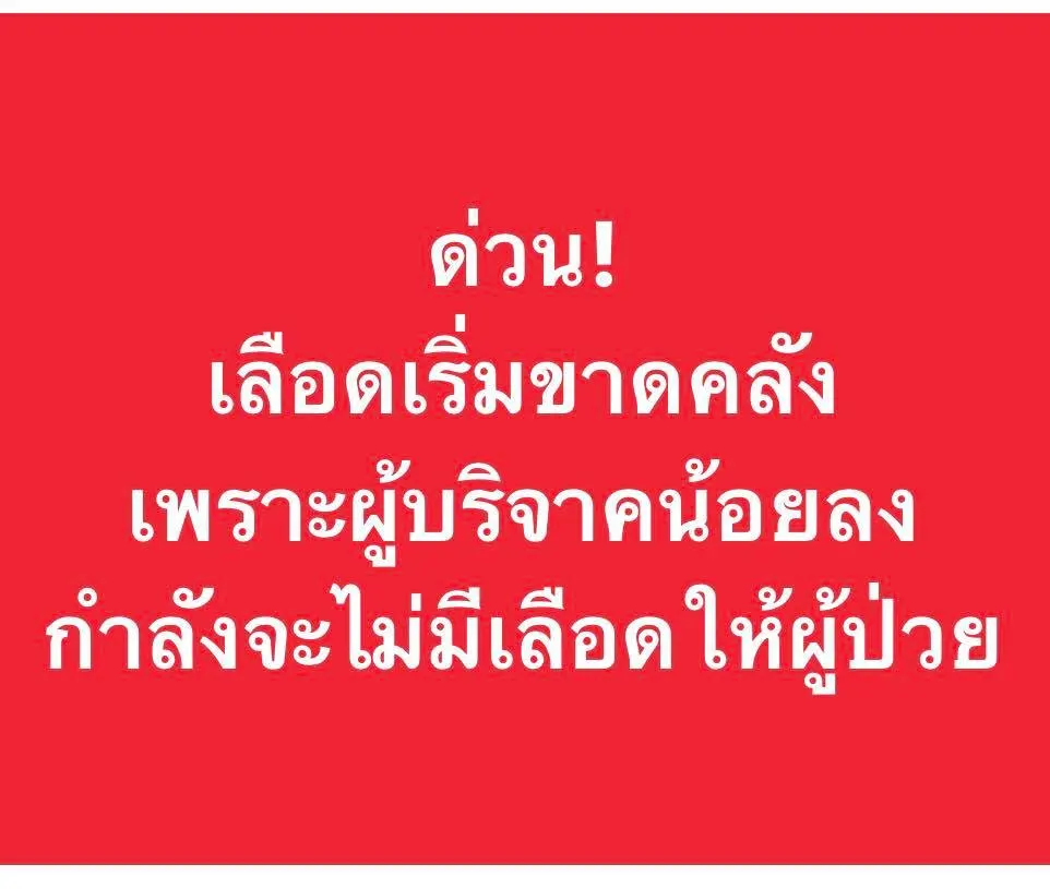 ด่วนระดับชาติ! สภากาชาดกำลังจะไม่มีเลือดให้ผู้ป่วย เพราะผู้บริจาคน้อยลง วอนช่วยกันบริจาค
