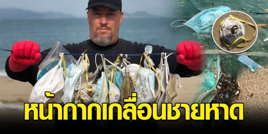 พบหน้ากากอนามัยใช้แล้วกลายเป็นขยะเกลื่อนชายหาด
