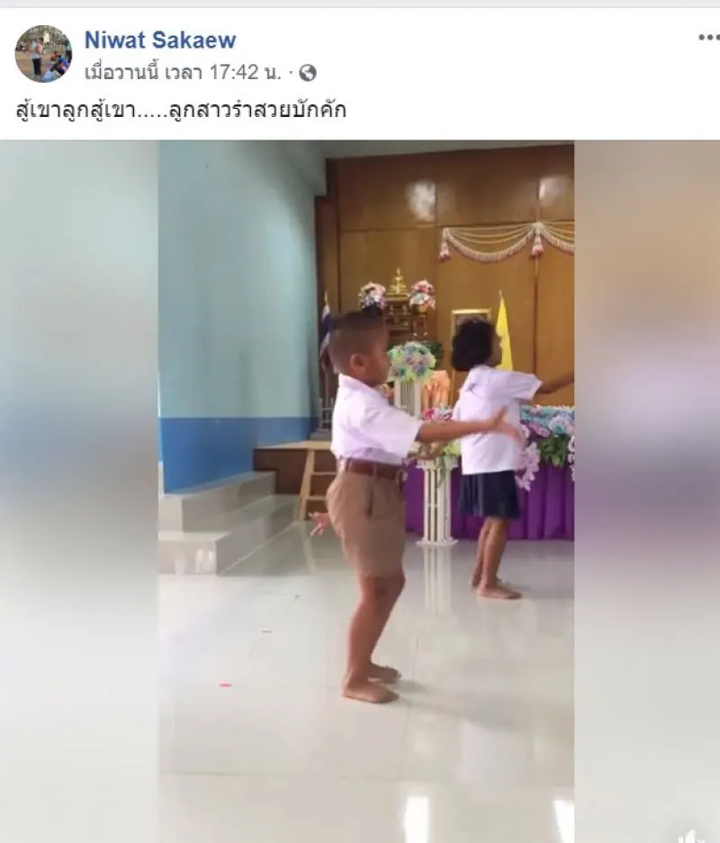 วันนี้ทีมข่าว จะพาคุณผู้ชมไปชมคลิปน่ารักๆของนักเรียนที่กำลังรำ โดยผู้ใช้เฟซบุ๊กชื่อ Niwat Sakaew ได้เผยภาพ พร้อมระบุว่า สู้เขาสู้เขา รำสวยบักคัก โดยในคลิปจะเห็นได้ว่า หนุ่มน้อยกำลังรำอย่างสวยและอ่อนช้อย จนนักเรียนหญิงชิดซ้ายไปเลยทีเดียว