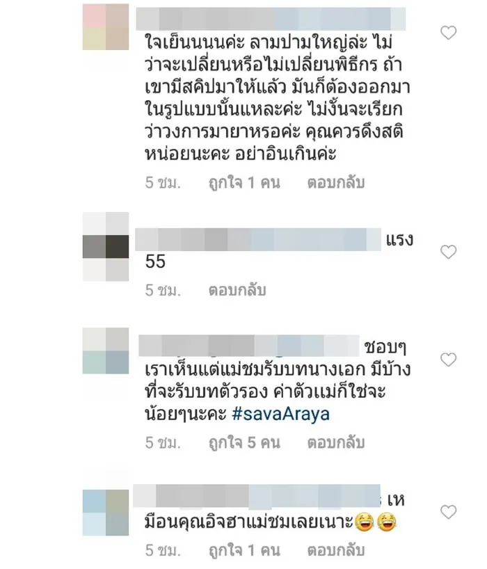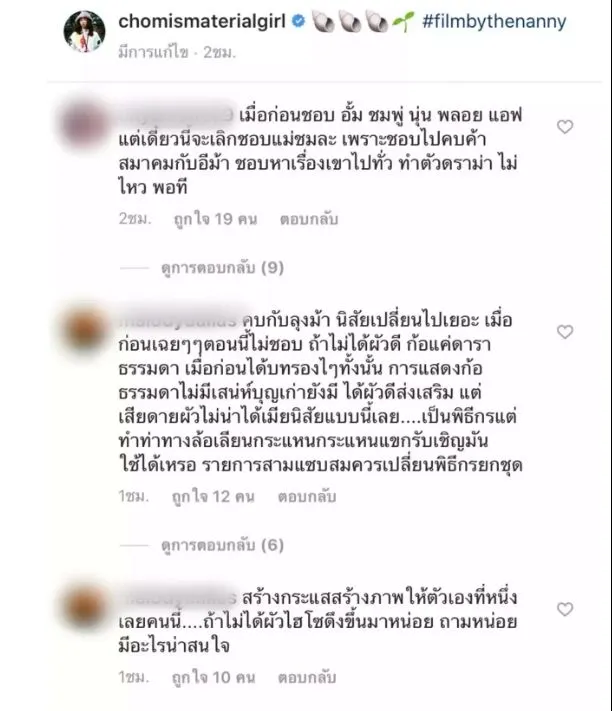 ซึ่งงานนี้ชาวเน็ตก็ได้เเสดงความคิดเห็นว่า เลิกชอบแม่ละ เพราะชอบไปคบค้าสมาคมกับ ม้า ชอบหาเรื่องเขาไปทั่ว ทำตัวดราม่า ไม่ไหว พอที, คบกับลุง ม้า นิสัยเปลี่ยนไปเยอะ เมื่อก่อนเฉยๆๆ ตอนนี้ไม่ชอบ ถ้าไม่ได้ผัวดี ก็แค่ดาราธรรมดา เมื่อก่อนได้บทรองๆ ทั้งนั้น การแสดงก็ธรรมดา ไม่มีเสน่ห์ บุญเก่ายังมี ได้ผั-ดีส่งเสริม แต่ก็เสียดายผัว ไม่น่าได้เมียนิสัยแบบนี้เลย เป็นพิธีกรแต่ทำท่าทางล้อเลียนกระแนะกระแหนแขกรับเชิญมันใช้ได้เหรอ รายการสามแซ่บสมควรเปลี่ยนพิธีกรยกชุด, สร้างกระแสสร้างภาพให้ตัวเองที่หนึ่งเลยคนนี้ ถ้าไม่ได้ผัวไฮโซดึงขึ้นมาหน่อย ถามหน่อยมีอะไรน่าสนใจ”