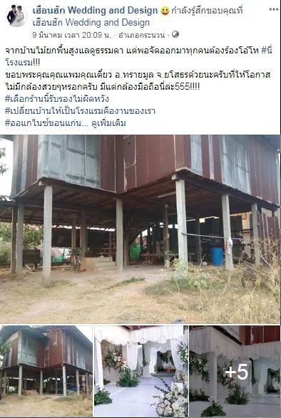 กลายเป็นอีกหนึ่งภาพที่โลกออนไลน์ให้ความสนใจเป็นอย่างมาก เมื่อเพจเฟซบุ๊ค เฮือนฮัก Wedding and Design ได้เผยภาพงานแต่งงานที่เนรมิตจากบ้านสังกะสีให้เป็นสถานที่จัดงานแต่งสุดเลิศหรูอลังการ