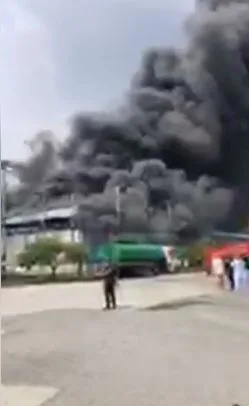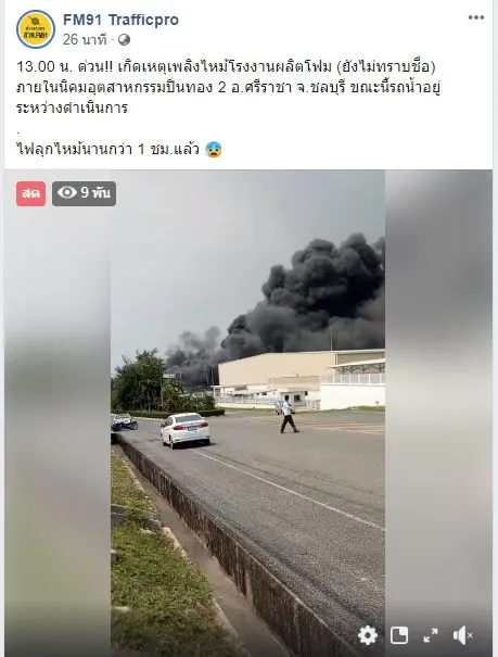 ด่วน! เกิดเหตุเพลิงไหม้โรงงานผลิตโฟม (ยังไม่ทราบชื่อ) ภายในนิคมอุตสาหกรรมปิ่นทอง 2 อ.ศรีราชา จ.ชลบุรี ขณะนี้รถน้ำอยู่ระหว่างดำเนินการ ไฟลุกไหม้นานกว่า 1 ชม.แล้ว