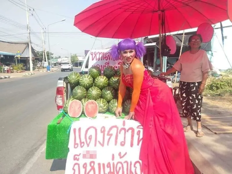 จากกรณีที่มีการเเชร์กันเป็นจำนวนมากในโลกออนไลน์ กับภาพของร้านขายเเตงโมข้างทางเเห่งหนึ่ง ซึ่งเป็นรถกระบะบรรทุกมาจอดขายพร้อมมีป้ายเขียนด้วยถ้อยคำอันสุดเเสบ ใครเห็นเป็นต้องสะดุดตา อ่านตาม บ้างก็อยากจะลองไปพิสูจน์ความจริงว่าเป็นอย่างที่โฆษณาไว้หรือไม่