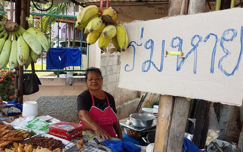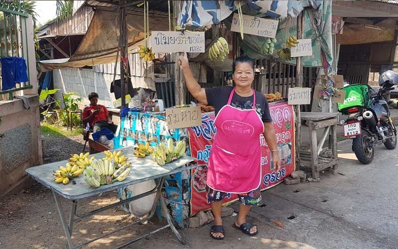 ลูกค้าเเปลกใจ ป้าเเม่ค้าขายกล้วยทอดเเปะป้ายเต็มหน้าร้าน ผ่านไปมาต้องเเวะถามไถ่
