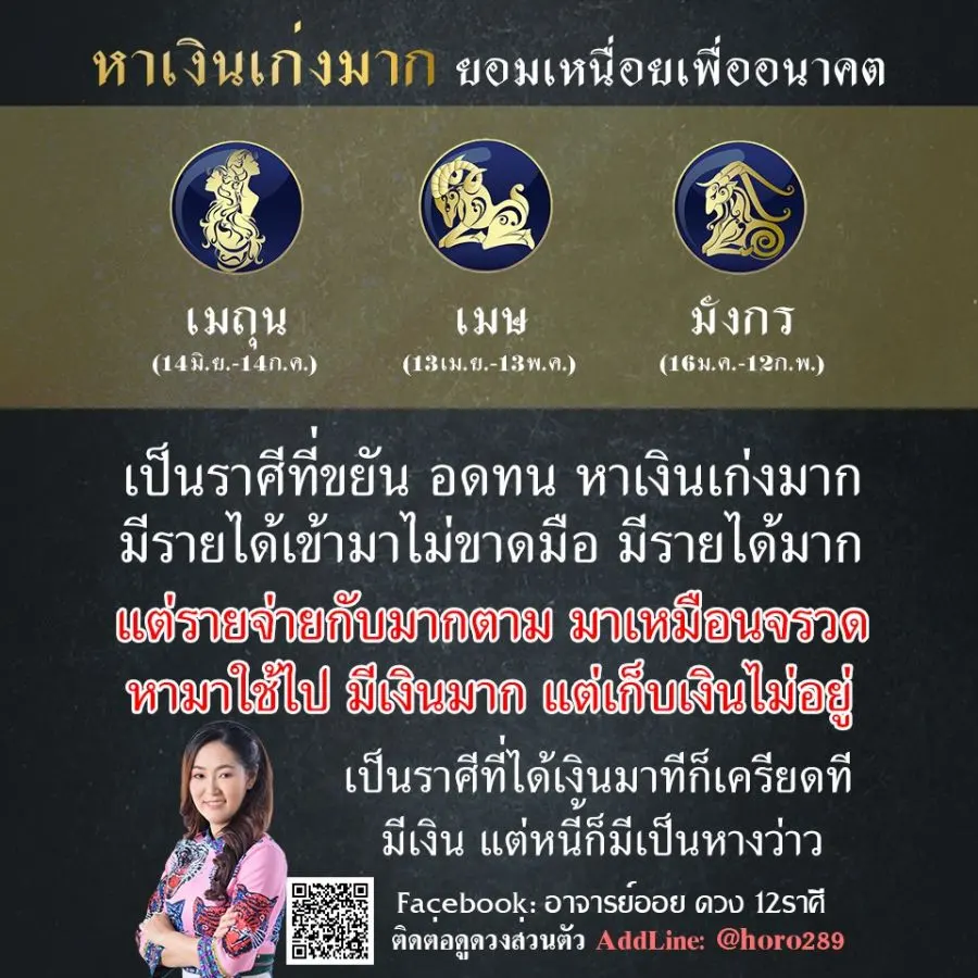 3 ราศี หาเงินเก่งมาก ยอมเหนื่อยเพื่ออนาคต เป็นราศีที่ขยัน อดทน หาเงินเก่งมาก มีรายได้เข้ามาไม่ขาดมือ มีรายได้มาก แต่รายจ่ายกับมากตาม มาเหมือนจรวด หามาใช้ไป มีเงินมาก แต่เก็บเงินไม่อยู่ เป็นราศีที่ได้เงินมาทีก็เครียดที มีเงิน แต่หนี้ก็มีเป็นหางว่าว