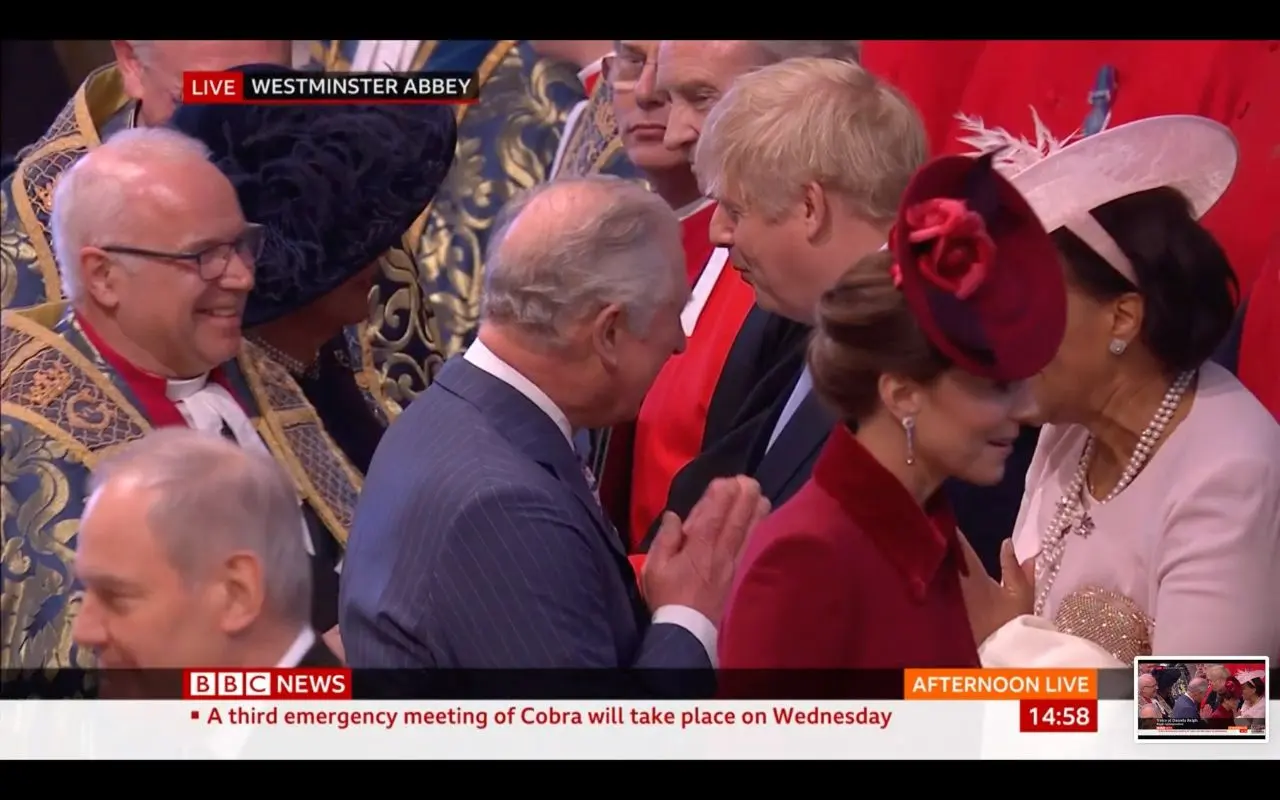 เช่นเดียวกับสมาชิกราชวงศ์องค์อื่นๆ อย่างดยุกแฮร์รี่ ซึ่งเดินทางมาร่วมในพิธีดังกล่าวด้วย พร้อมกับดัชเชสเมแกน แห่งซัสเซกส์ ก็ใช้การทักทายแบบใหม่ที่เรียกว่า "elbow bump" หรือการใช้ข้อศอกชนกันเพื่อทักทาย แทนการจับมือ