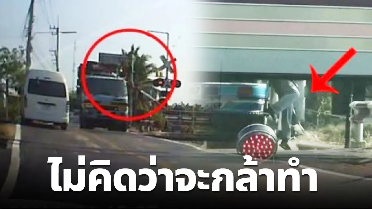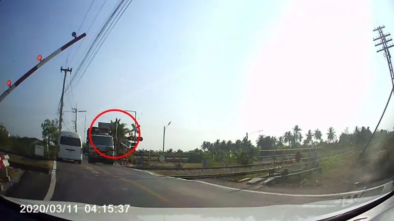 รถบรรทุก จอดช่วงเหล็กกันทางรถไฟลง อาศัยจังหวะชิ่งหนี