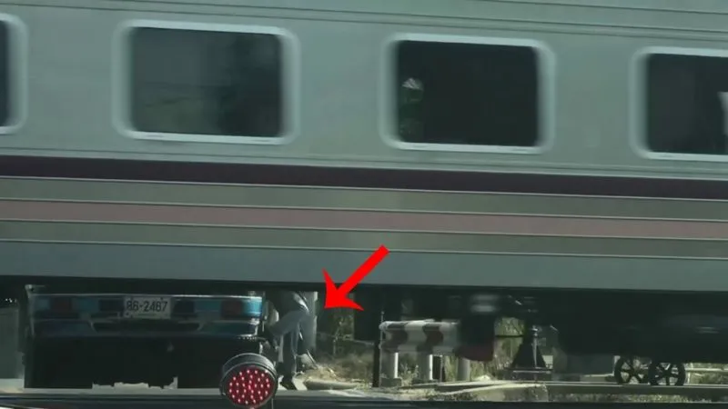 โดยในภาพจากกล้องของโทรศัพท์มือถือที่คนขับรถฝั่งตรงจะจับภาพบันทึกว่า ช่วงระหว่างที่รถไฟกำลังเคลื่อนผ่านจุดกั้น แทนที่จะรอให้เหล็กกั้นยกขึ้นเอง ได้มีผู้โดยสารฝั่งคนนั่งอาศัยจังหวะรถไฟบัง เปิดประตูลงมาแล้วทำการยกงัดเหล็กที่กั้นออกจากจุดที่กั้นขัดไว้ จนเหล็ก ใช้การไม่ได้ เมื่อรถไฟเคลื่อนผ่านไป คนขับรถบรรทุกคันดังกล่าวได้ขับออกไปโดยไม่ได้สนใจหรือจอดรถกลับลงมาดู เหล็กที่กั้น