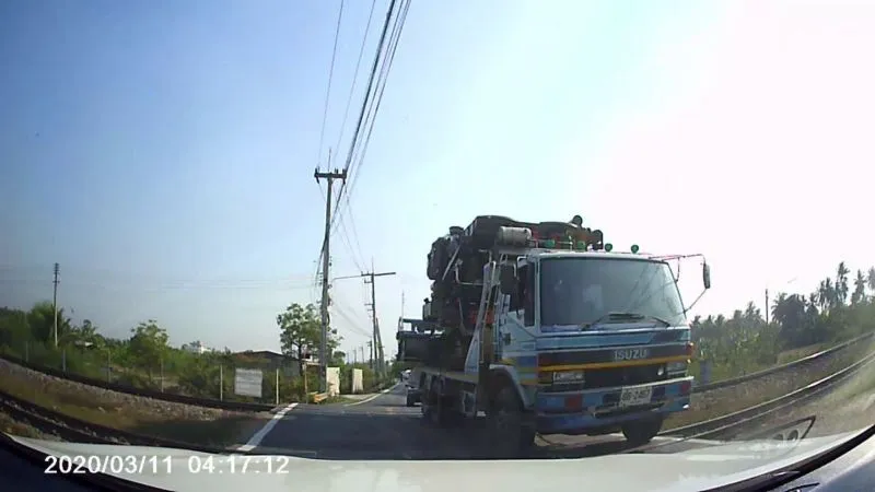 วันนี้ 12 มีนาคม 63 ผู้สื่อข่าวรายงานว่า ได้มีการเผยภาพกล้องหน้ารถและกล้องที่ถูกบันทึกได้โดยโทรศัพท์มือถือของชาวบ้าน ขณะรถบรรทุกสิบล้อสีฟ้าหมายเลขทะเบียน 86 2467 นครปฐม ที่บรรทุกรถเกี่ยวข้าว ที่วิ่งมาบนถนนถึงทางกั้นรถไฟ ม 4 ตำบลงิ้วราย อำเภอนครชัยศรี จังหวัดนครปฐม และค่อย ๆ เคลื่อนตัวกำลังข้ามทางรถไฟในช่วงจังหวะที่มีที่กั้นกำลังเคลื่อนตัวลงมาก่อนคนขับจะรู้สึกตัวและทำการเบรกหยุดรถแต่ไม่ทัน ทำให้ที่กั้นได้เคลื่อนลงมาขัด ระหว่างรถ