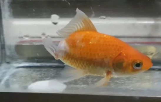 แต่เราไม่ถอดใจ คอยเปลี่ยนน้ำ ใส่ยาในน้ำนิดหน่อย และเอาตัวขึ้นมาจับป้ายยาที่แผลทุกวัน จนเนื้อและก้างที่เปื่อยหลุดไป ก่อนที่จะสร้างขึ้นใหม่ และตอนนี้หางก็ขึ้นมานิดนึงแล้ว แต่เจ้าถุงทองร่าเริงและว่ายน้ำเก่งมาก