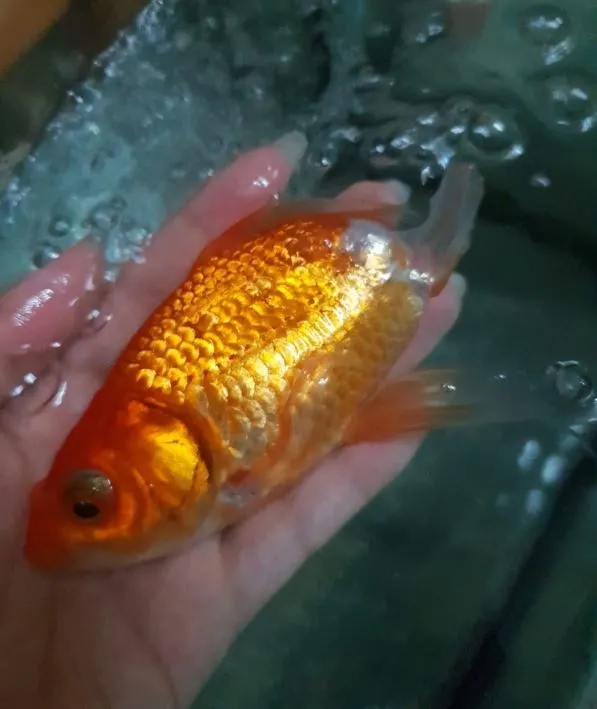 อยู่ดีๆ เนื้อก็เปื่อยแล้วค่อยๆ หลุดออกไป จนก้างโผล่เหลือแค่ครึ่งตัว ซึ่งตอนแรกคิดว่าจะไม่รอด เอาให้ร้านขายปลาดูเพื่อจะซื้อยามารักษา แต่ที่ร้านก็บอกให้เอาไปปล่อยเพราะไม่รอดแน่ ซึ่งตนเองไม่ถอดใจ คอยเปลี่ยนน้ำ คอยป้ายยาที่แผล ตอนนี้ผ่านไปจะ 6 เดือนแล้ว แผลเริ่มปิดสนิท แม้ร่างกายอาจจะไม่สมบูรณ์ แต่เจ้าถุงทองใจสู้มากค่ะ