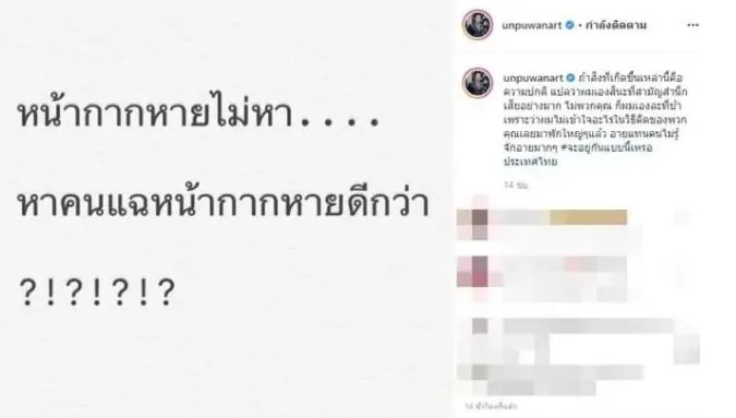 ล่าสุด อั๋น ภูวนาท โพสต์ไอจีวิพากษ์วิจารณ์ถึงปมร้อนนี้ว่า หน้ากากหายไม่หา หาคนแฉหน้ากากหายดีกว่า พร้อมแคปชั่นว่า “ถ้าสิ่งที่เกิดขึ้นเหล่านี้คือความปกติ แปลว่าผมเองสินะที่สามัญสำนึกเสียอย่างมาก ไม่พวกคุณ ก็ผมเองละที่บ้า เพราะว่าผมไม่เข้าใจอะไรในวิธีคิดของพวกคุณเลยมาพักใหญ่ๆแล้ว อายแทนคนไม่รู้จักอายมากๆ #จะอยู่กันแบบนี้เหรอประเทศไทย