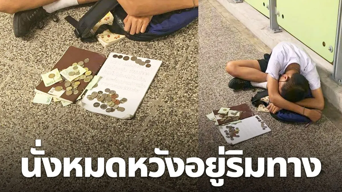 สาวเห็นเด็ก นร. นั่งหมดหวังอยู่ริมทางเดินพร้อมข้อความบนกระดาษ พออ่านจบทำเอาน้ำตาซึม