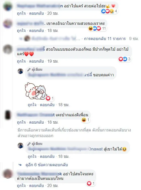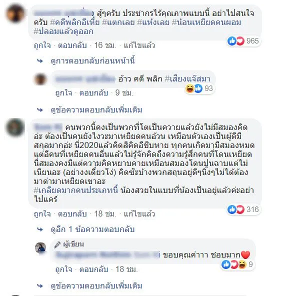 หลังจากโพสต์ดังกล่าวถูกแชร์ออกไปนั้น ชาวเน็ตหลายคนก็เข้ามาคอมเมนต์ให้กำลังใจกันอย่างล้นหลาม