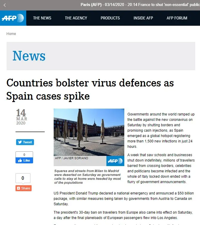 เอเอฟพี รายงาน พบผู้ติดเชื้อไวรัสโคโรนากว่า 1,500 ในยันที่ 14 ที่ผ่านมา ทำให้ยอดผู้ติดเชื้อของประเทศนี้เพิ่มเป็น 5,753 ราย ตัวเลขนี้สูงสุดเป็นอันดับสองในยุโรปรองจากอิตาลี เตรียมประกาศสภาวะฉุกเฉินฝต่อสู้กับตอนนี้คร่าแล้ว 183, สืบหาสาเหตุมืดแปดด้าน ไม่รู้เชื้อระบาดมาจากไหน?