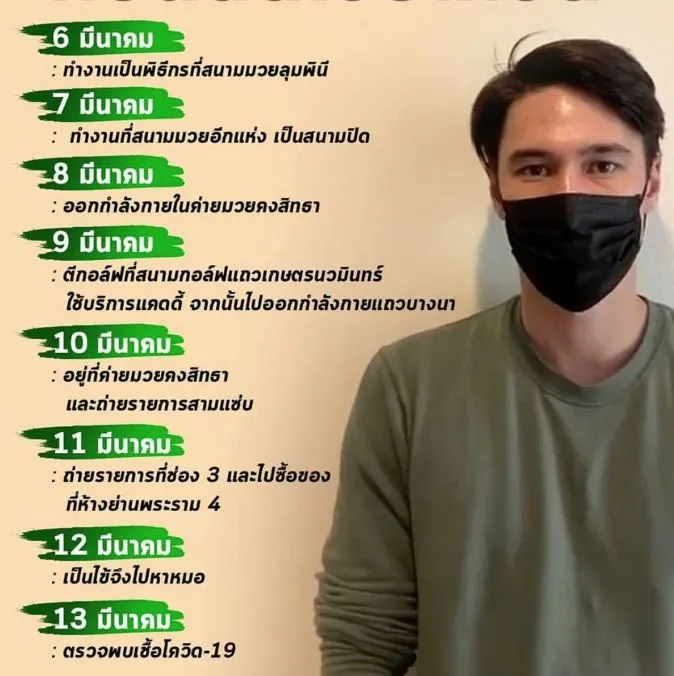 8- คืนนั้นทราบผลการตรวจไวรัส 21 สายพันธุ์ว่าไม่มีเชื้อ แต่วันรุ่งขึ้น (13 มีนาคม) ก็ได้รับการยืนยันผลตรวจไวรัสโควิด-19 ว่าผลเป็นบวก