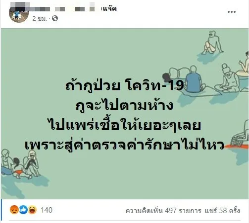 ถ้ากูป่วย โควิท-19 กูจะไปตามห้าง ไปแพร่เชื้อให้เยอะๆเลย เพราะสู่ค่าตรวจค่ารักษาไม่ไหว