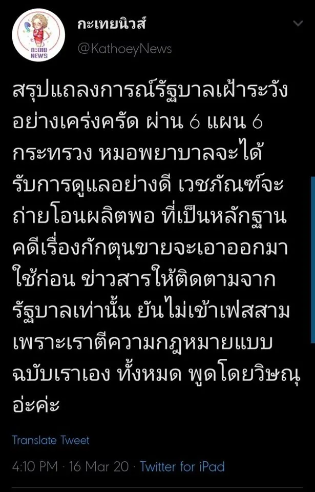 โพสต์โดย ข่าวช่องวัน เมื่อ วันจันทร์ที่ 16 มีนาคม 2020
