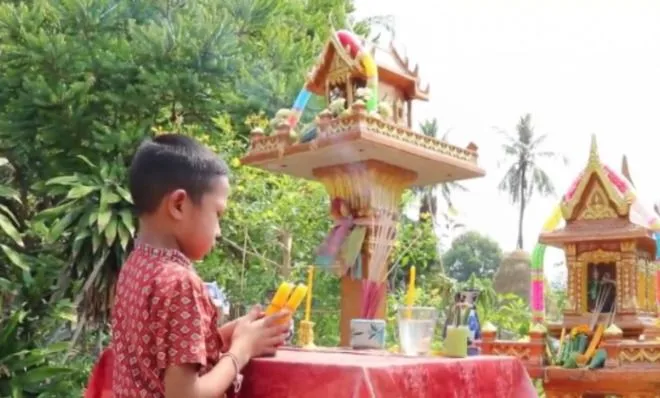 โดยน้องเบ็นเท็น ได้ใช้เวลาทำพิธีและรำประกอบเพลงกันตรึม ซึ่งเป็นศิลปะทางอิสานใต้ ประมาณ 1 ชม. จึงเสร็จสิ้นพิธี